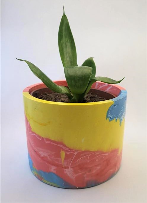 These plant pots make a lovely gift, or beautiful decorative item for your home. Use them to display your indoor plants. Hand made by our students using an environmentally friendly material called Jesmonite, which is a great alternative to resin as its solvent free, non-toxic and has no VOC’s.